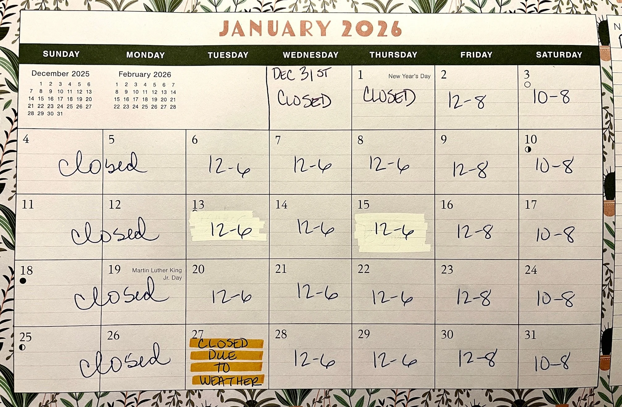Please call or message us if it is not updated with the current month and the one after. Thank you.